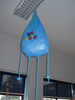 | A Gotinha Ping Ping feita com sacos de plástico, desperdício e tampinhas |